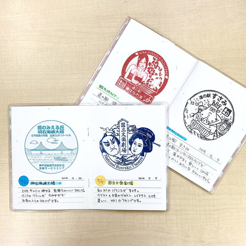 生地の入ったつや消しビニール表紙のスタンプ帳 プリント生地をカットするため1枚1枚、柄の出方が違います 中紙32ページでインクの吸い取り紙付き。