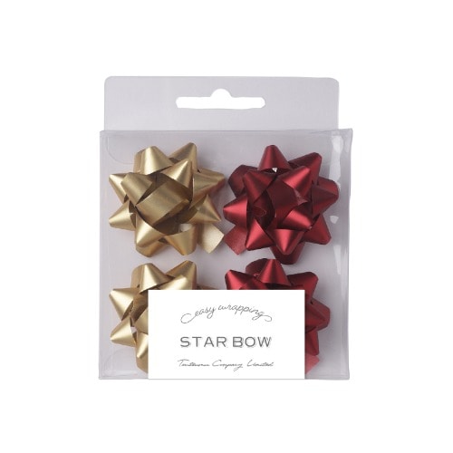 マット調のメタリックリボンが上品活華やかにプレゼントを彩るボウリボン。4個入りで複数のプレゼントにも便利!