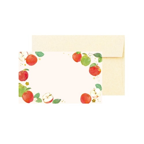 落ち着いたトーンのリンゴ柄が、柔らかで上品なミニカード。封筒とカードのセットです。