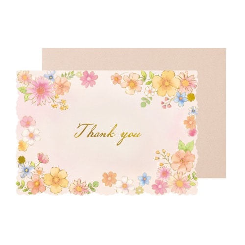 温かい色味の花柄が華やかなサンキューカード