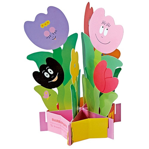 くるっと360°カードを開くと、そこに花が咲いているようなポップアップのかわいいバーバパパシリーズのグリーティングカード