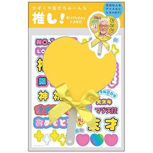 カードに写真を貼って、付属のシーでデコレーションするだけで、簡単に推しアイドル風カードの出来上がり。これでお誕生日会など盛り上げること間違いない!【セット内容】本体1枚(リボン付)・封筒1枚・「あ~ほ」シール2枚・「ま~さま」シール2枚・デコシール2枚 封筒色:グレー