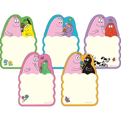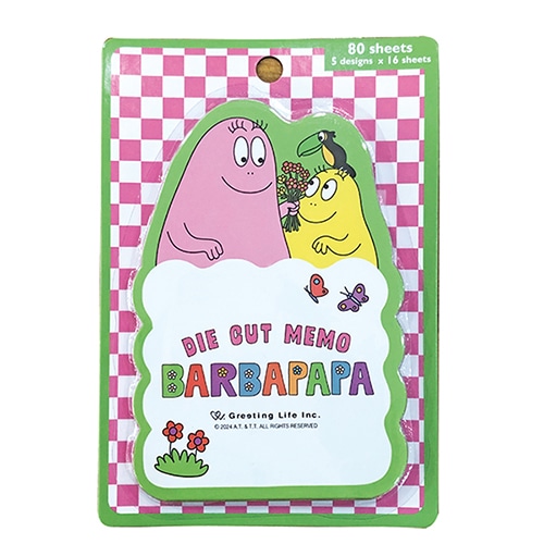 絵柄や表情・カラーが異なる5種の絵柄が楽しめるバーバパパのダイカットメモ。表面に文字がかけるので、ちょっとしたお手紙にも使用できます。シート80枚(5柄×各16枚)