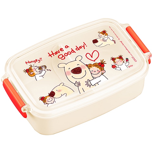 シンプルな作りのココちゃんのランチボックス。2点ロック。フタを外して電子レンジ可。※食洗機可・乾燥機可 抗菌加工あり 容量:500ml