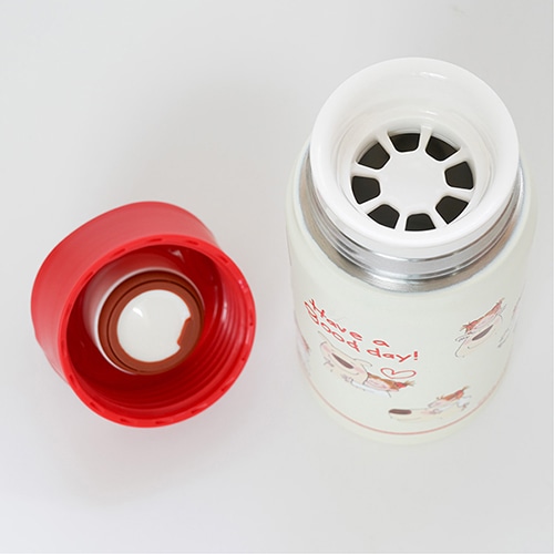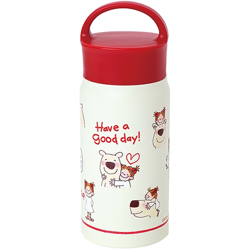ココちゃんの人気のステンレスボトルがリニューアル!少し小ぶりがちょうどいいサイズ感。フタは取手付きで、持ち運びしやす仕様です。※電子レンジ・食洗機不可 容量:350ml