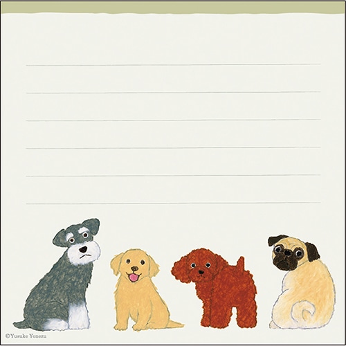 米津祐介の描く、いぬシリーズのかわいいメモ帳。シート120枚。中面4柄入。森林認証紙使用のため、地球にも優しいメモ帳です。色々なシチュエーションに使用できるので、どれを使うか選ぶのも楽しいです。