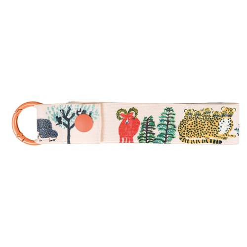 丸カンタイプのカラビナなので、スマホ・鍵・キーホルダー、色々なリングにつけて持ち歩けるストラップチャーム。着脱可能なホックでカバンの持ち手などにもつけられます。バンド部分にもしっかり絵柄がほどこされていたので、アクセント、ファッションにもなります。カラビナ色:オレンジ 柄:ミロコマチコ アニマル