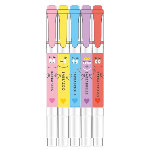 ゼブラの人気商品「マイルドライナー」とバーバパパのコラボ商品が再登場!5色セットなので、お気に入りのカラーがみつかるかも。ペンの柄もバーバパパファミリーのフェイスになっているところがかわいさのポイントです。カラー:マイルダスティピンク・マイルドレモンイエロー・マイルドブルー・マイルドライラック・マイルドバーミリオン 水性顔料使用 線の太さ:太4mm/細1.0~1.4mm