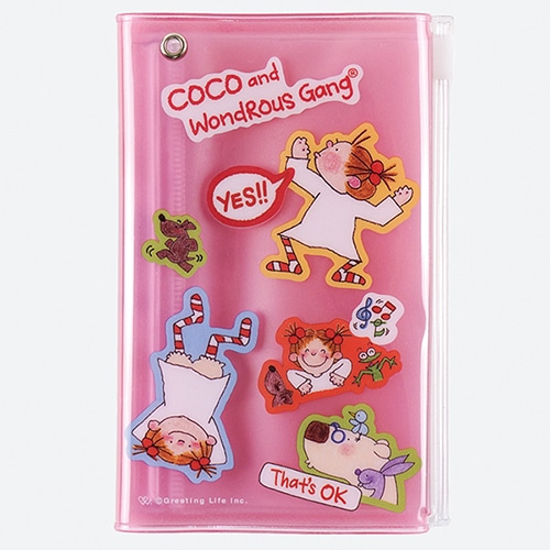 きちんと整理収納できるTIDYシリーズから、鞄の中で見失いがちな小さなものにちまちま仕分けられるミニポーチのココちゃんの新柄登場。表紙のスライダーポーチと、中の4つのジップポケットできちんと整理。シールや付箋など手帳のデコ用品にも、薬や絆創膏などの常備薬入れにもぴったりです。ハトメでパチンとコンパクトにできます。ジップポケット4枚・表紙スライダーポーチ・カードポケット付。