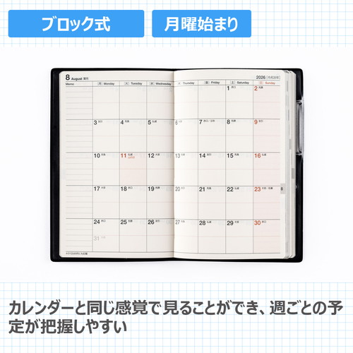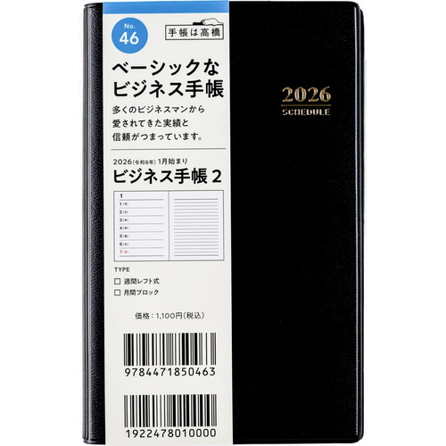 #高橋書店(日本国内のみ) 手帳 2026年 ウィークリー ビジネス手帳 2 黒 No.46 (2026年 1月始まり)