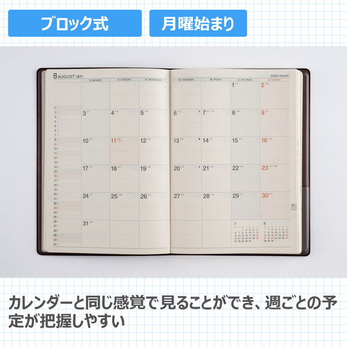 #高橋書店(日本国内のみ) 手帳 2026年 A5 ウィークリー ビジネス卓上日誌 茶 No.54 (2025年 12月始まり)