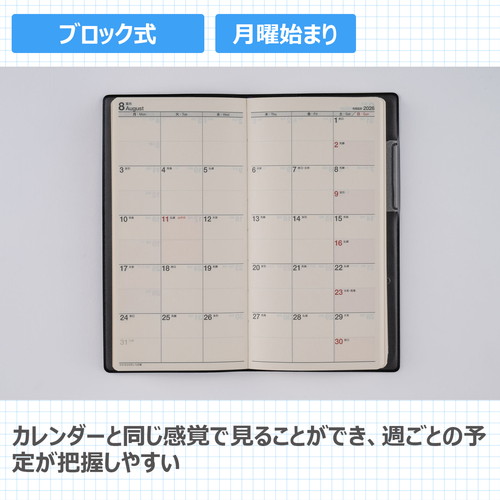 王道ビジネス手帳シリーズビジネスマンが使いやすい紙面構成に、細部までこだわり抜いて作られています。