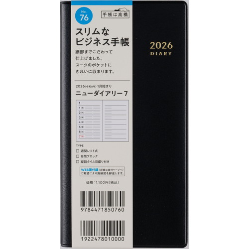 #高橋書店(日本国内のみ) 手帳 2026年 ウィークリー ニューダイアリー 7 黒 No.76 (2025年 12月始まり)