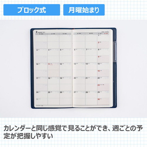 王道ビジネス手帳シリーズビジネスマンが使いやすい紙面構成に、細部までこだわり抜いて作られています。
