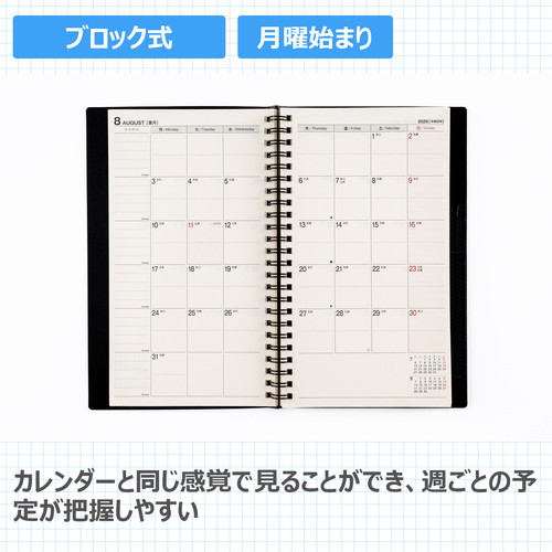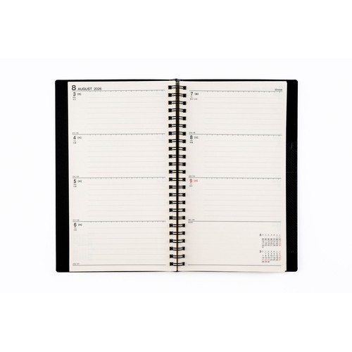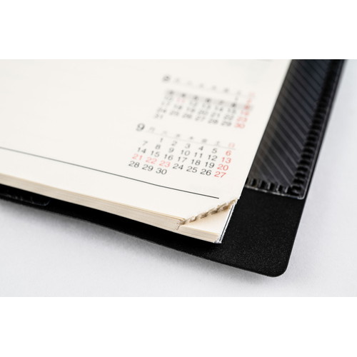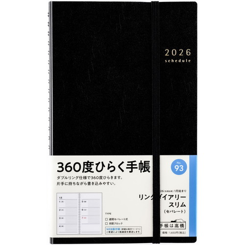 360度ページが開くダブルリング式ダイアリーカバンの中でも開かない、ゴムバンド付きです。