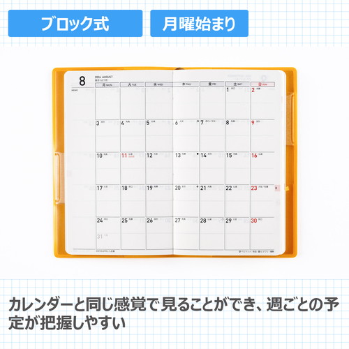 コンパクトがらも機能性バツグン!小さいサイズでも、付録内容が充実したシリーズ。6色のさまざまな記入形式から選べます。