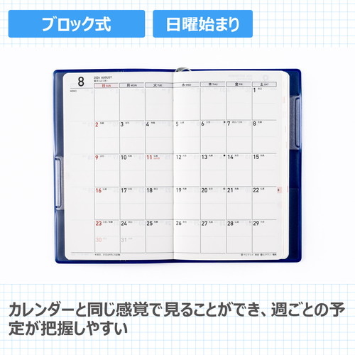 コンパクトがらも機能性バツグン!小さいサイズでも、付録内容が充実したシリーズ。6色のさまざまな記入形式から選べます。