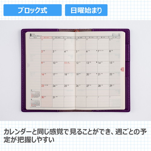 シンプルで機能性抜群!毎年のトレンドカラーから、試行を重ねたカバーデザイン。質感にもこだわり抜いています。※日曜始まり