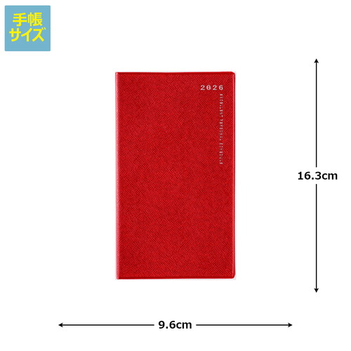 「見開き1ヵ月+メモ」のシンプルさが人気!カレンダーと同じで見やすい日曜始まり、土日均等タイプです。