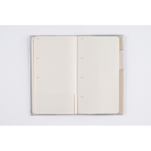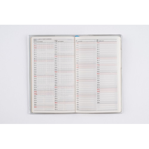 「見開き1ヵ月+メモ」のシンプルさが人気!カレンダーと同じで見やすい日曜始まり、土日均等タイプです。