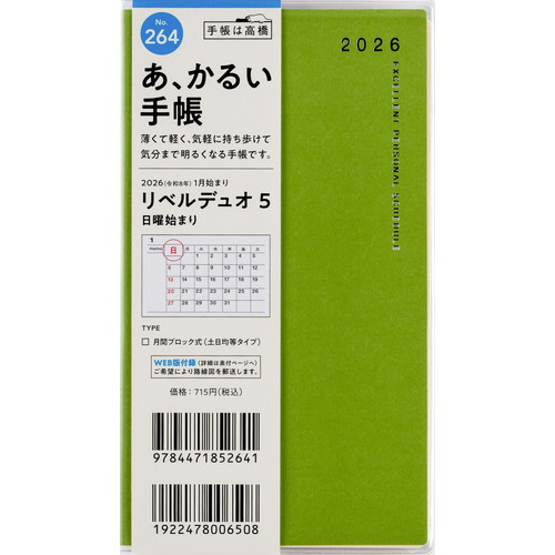 #高橋書店(日本国内のみ) 手帳 2026年 マンスリー リベルデュオ 5 黄緑 No.264 (2025年 11月始まり)