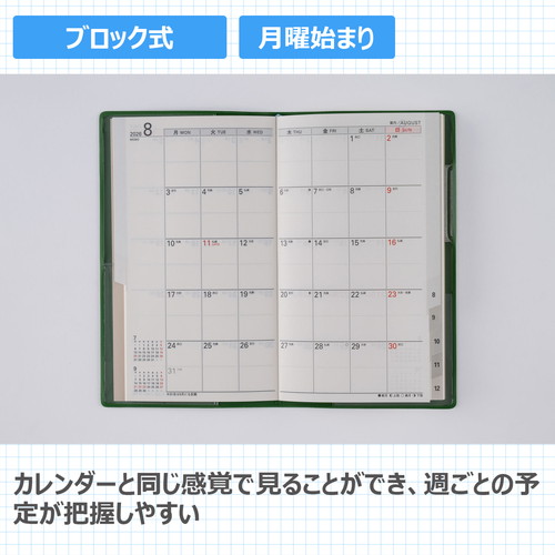 #高橋書店(日本国内のみ) 手帳 2026年 マンスリー リベル インデックス 9 緑 No.309 (2025年 11月始まり)