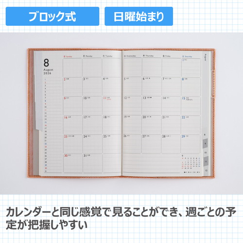 ビジネスシーンでも使いやすい皮革調タイプ「スケジュール管理はスマホと手帳併用派」にオススメの一冊。
