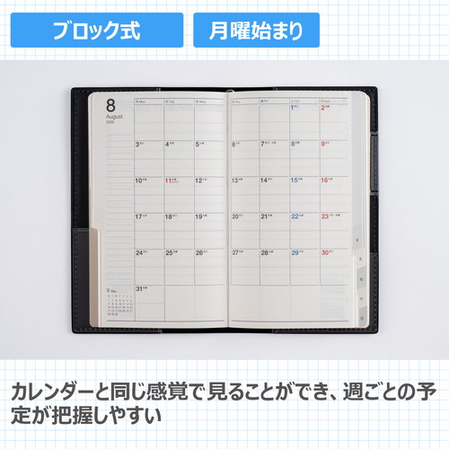 高級感あふれる、ビジネス手帳見たい月をすぐに開けるインデックス付きです。