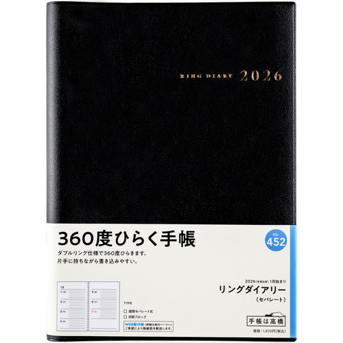 #高橋書店(日本国内のみ) 手帳 2026年 A5 ウィークリー リングダイアリー セパレート 黒 No.452 (2026年 1月始まり)