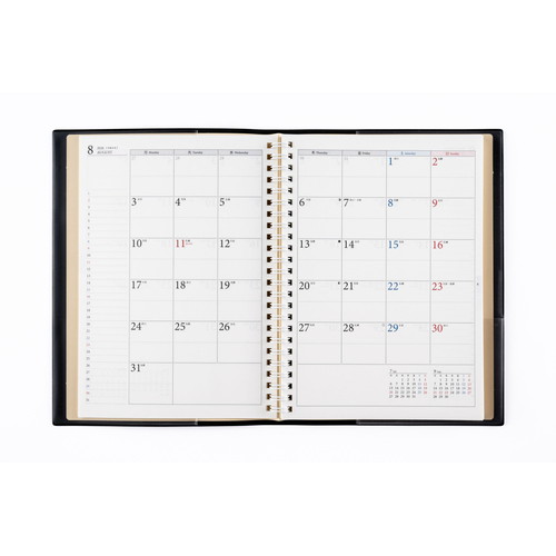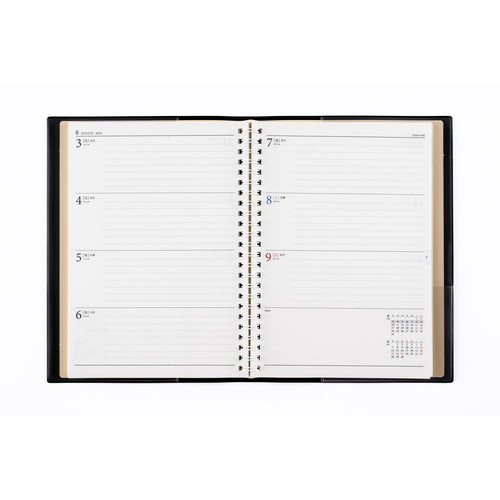 360度ページが開くダブルリング式ダイアリーページが開きやすい切り取りインデックス付きで、機能性に優れています。