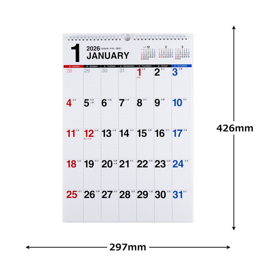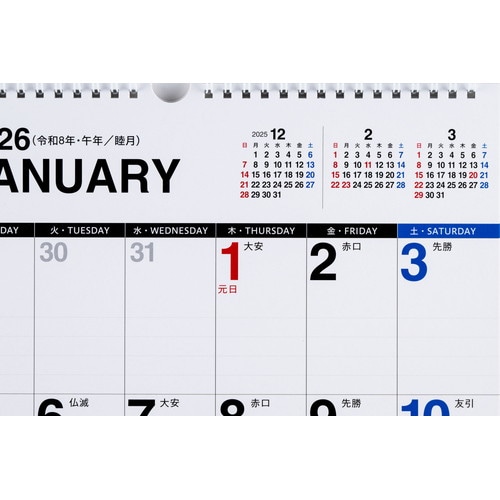 ご自宅でもオフィスでもなじむ、シンプルなカレンダー。数字が大きく、遠くからでも見やすいデザインです。2年分を一覧できる年間カレンダーが付いているので、長期計画の立案もしっかりサポートしてくれます。