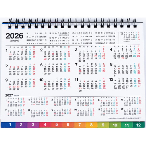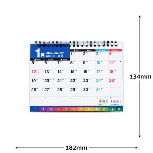 ビジネスの予定や、土日の予定が立てやすい月曜始まり。便利なカラフルインデックス付き。表と裏で予定を書き分けるなど、自在に使えます。インデックス付きなので、見たい月がすぐに開けます。【本体サイズ】134×182(mm)【曜日始まり】月曜始まり【記入形式】表面:ブロック式 裏面:横ケイ式カレンダー