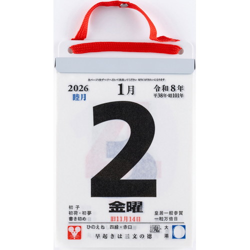 本体サイズが134×99㎜の超小型の日めくりカレンダーなので、狭い場所にも掛けられます。旧暦や六曜、九星、干支、歳時記など、毎日の暮らしに役立つ情報や、故事ことわざ慣用句を1日にひとつずつ掲載。1年365日、めくるのが楽しくなります。【本体サイズ】134 × 99(mm)