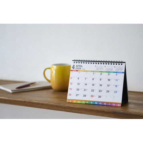 ポップな色使いのカラフルカレンダー。 見たい月を素早くめくれるカラフルインデックス付き。