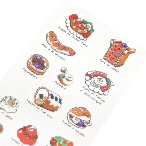 手描きの優しい風合いと和紙の透け感がマッチした商品に仕上がりました。フランスの食べ物や風景をシールとしてお楽しみいただけます。