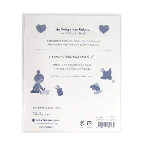 「よもやま」という名前の通り、便箋やメモ用紙にしたり、食用インキを使用しているため食べ物を置いたり、包装紙として使用したりなどさまざまな使い方が可能です。【検索ハッシュタグ】#カミイソ産商#SAIEN#紙#デコレーション#国産#包装#北欧