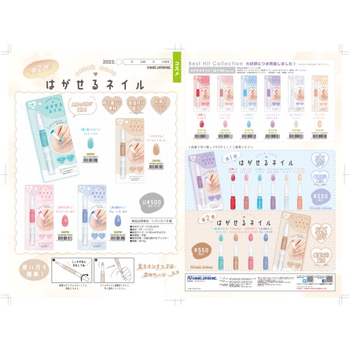 スティックタイプで塗りやすく、持ち運びにも便利♪お湯で簡単OFFができるので1日だけネイルがしたい日にもおすすめです!爪の乾燥を防ぐ保湿成分配合!