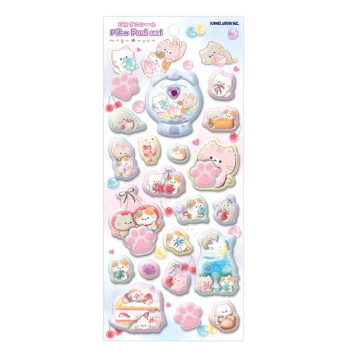 蓄光仕様のプニプニパーツ付きステッカーです。【検索ハッシュタグ】#カミオジャパン#カミオ#文房具#文具#ステッカー#シール#蓄光#パーツ#もぐにゃん#ネコ