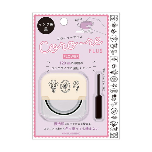 120mmの印面ロングタイプの回転スタンプです。印面の上から色を塗ったり、別売りのインクで色替えも楽しめます。【検索ハッシュタグ】#カミオジャパン#カミオ#文房具#文具#コローリー#スタンプ#花