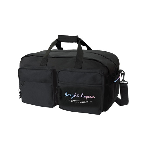 45リットルの大容量! トラベルボストンバッグが発売!手持ち&ショルダー掛けの2way 仕様!収納に便利なポケット付き!グラデーションになっている刺繍とハートのチャームがポイントです!