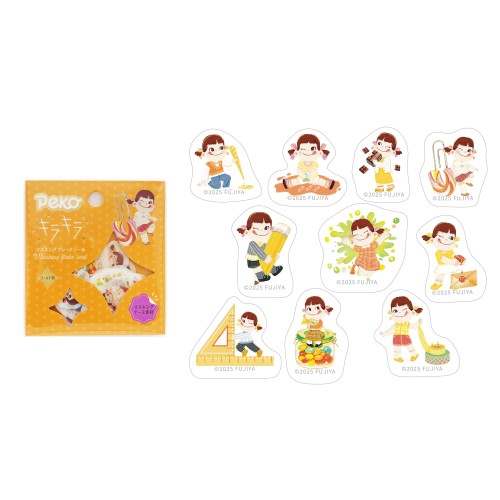 ペコちゃんとキラキラシリーズがコラボレーションしたフレークシールです!おしゃれにお着替えしたペコちゃんたちのデザインが揃いました。