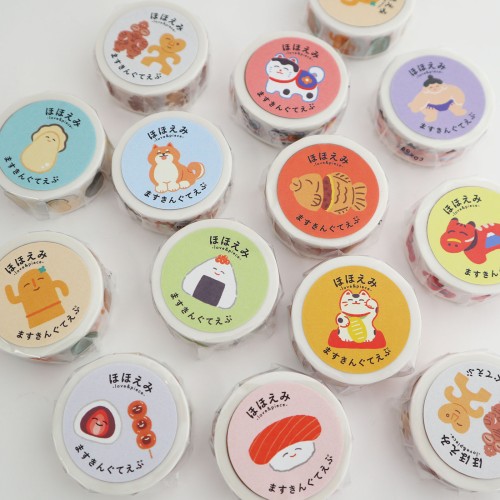 描かれているモチーフがニコニコしていて、使うと思わずほほえんじゃう日本製のマスキングテープです。【検索ハッシュタグ】#インバウンド#マスキングテープ#日本製#新商品#ワールドクラフト#WORLD CRAFT#ゆる和#マステ