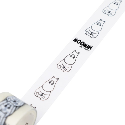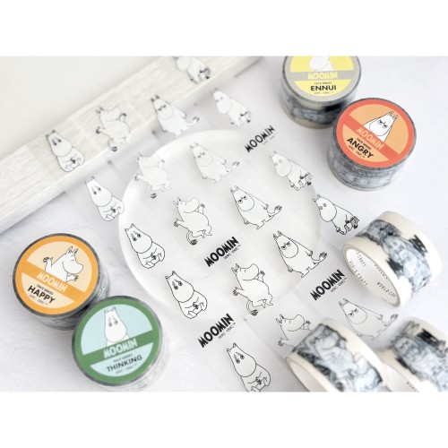 ムーミンの悩んでいる表情が特徴的なマット素材のクリアテープです。少し幅広の25mmを採用しています。