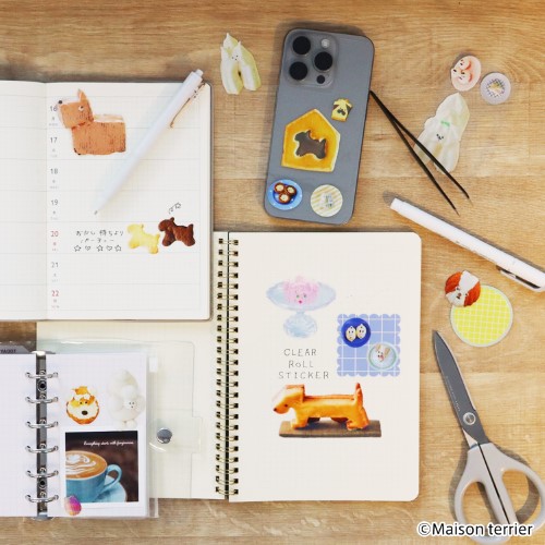 自分で好きなモチーフを好きな形に切り取って貼って使えるクリアロールステッカー。幅60㎜×2mのクリアテープに隙間なく、各クリエイターの人気イラストを配置した贅沢なシートシール。全てのシールにオーロラのキラキラ加工。ノートや手帳デコのパーツとしても◎。特別感のあるリッチなシールで、高精細な印刷でクリエイターのイラストの世界観をクリアに表現しています。【検索ハッシュタグ】#komamono#文具#雑貨#シール#ステッカー#ロールステッカー#クリアステッカー#クリアシール#クリアロールステッカー#デコレーション#クリエイター#Maison terrier#メゾンテリア