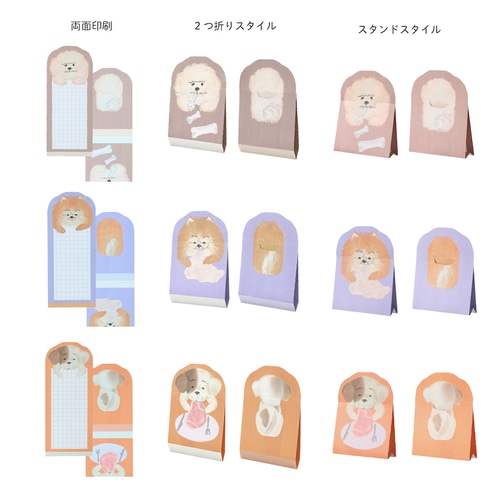 【便利な3ways】①そのままフラットメモとして、②2つ折りでお手紙タイプに、③ジャバラ折りでスタンドタイプに!全10種類と、デザイン展開が豊富なので、贈り物やコレクションにもピッタリ。両面印刷なので、はむっと差し込んだ時のデザインの変化もポイント。厚みもしっかりでメッセージカードにもなる可愛いデザインです。【検索ハッシュタグ】#エポックケミカル#epoch chemical#メモ帳#勉強#オフィス#ノート#手帳#シンプル#ポストイット#便利#書き込み#ギフト#コレクション#イヌ