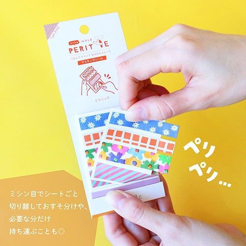 ●カラカラペリッテに持ち歩きに便利なシートタイプが仲間入り●端をつまんでめくるだけで、簡単に台紙から剥がせる●剥がしやすく、貼りやすい●折りたたんで持ち歩きもできる●1シートごとにミシン目で切り離せるからお裾分けも簡単●摘む部分に剥離紙が残るから指先もベタつかない●そのまま剥離紙を残せばふせんやインデックスのような使い方もできる●鉛筆でも水性ペンでも書き込みができる●カラカラペリッテ(ロールシール)の姉妹品【検索ハッシュタグ】#エポックケミカル#シール#付箋#マスキングテープ#マステ#インデックス#収納#文具女子博#シート#雨もよう