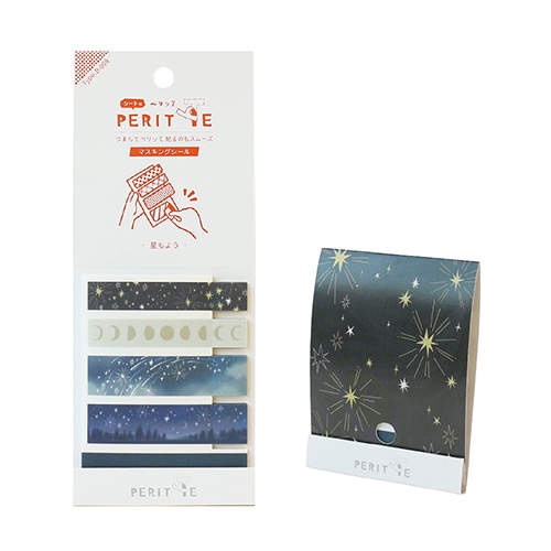 ●カラカラペリッテに持ち歩きに便利なシートタイプが仲間入り●端をつまんでめくるだけで、簡単に台紙から剥がせる●剥がしやすく、貼りやすい●折りたたんで持ち歩きもできる●1シートごとにミシン目で切り離せるからお裾分けも簡単●摘む部分に剥離紙が残るから指先もベタつかない●そのまま剥離紙を残せばふせんやインデックスのような使い方もできる●鉛筆でも水性ペンでも書き込みができる●カラカラペリッテ(ロールシール)の姉妹品【検索ハッシュタグ】#エポックケミカル#シール#付箋#マスキングテープ#マステ#インデックス#収納#文具女子博#シート#星もよう
