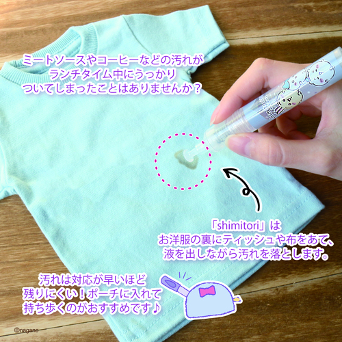 しみとりにちいかわ第二弾が登場しました!持ち運びに便利なペン型の衣類用しみとり剤です。油性・水性どちらのシミにも対応しています。
