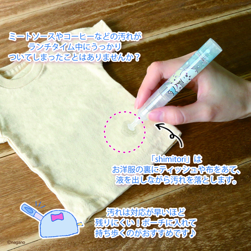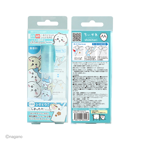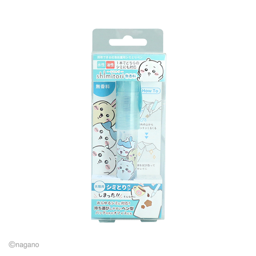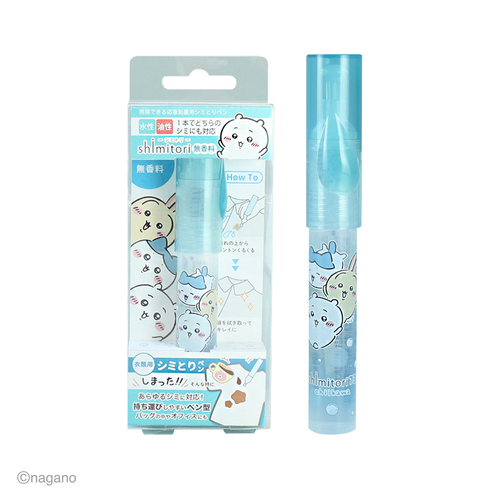 大人気のちいかわshimitoriが自立できるPPケースに入って登場。持ち運びに便利なペン型のしみとり剤です。携帯用なのでサッと取り出して、パパっと応急処置が可能です。