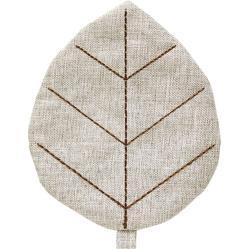 コロンとした葉っぱの形がかわいいコースター。食卓に並べるだけでほっこりしてしまいそう。葉脈は同系色のステッチで表現されています。リーフポットマットと同じ色展開のため、合わせてのご使用がおすすめです。【検索ハッシュタグ】#葉#葉っぱ#コースター#マット#ポット#テーブル#ティー